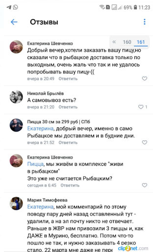 Read moreЯ думала, я одна такая. Но нет - куча отрицательных отзывов. А все потому, что кнопочки "удалить комментарий", как в ВК, тут нет. Пишу и смеюсь :) Год-полгода назад заказывали пиццу в Усть-Славянку. И ее туда везли, как ДАЖЕ в Мурино и Кудрово, от 3х шт бесплатно. По качеству вопросов нет, вкусно. По сервису - много. Как будто оператор отработал всю жизнь паспортисткой в классическом их виде. Ну да ладно. Месяц (!) назад на заказ перезвонили и сказали, что везут в Усть-Славянку только от 4х. Естественно, ни зоны доставки, ни какой-то информации где-то, кроме головы оператора и, возможно, листе А4 не было. Опять "ну да ладно", заказали. И тут 22.03.21 захотелось пиццы, оставили заказ. Прошел час, ни ответа, ни привета. Как оказалось, мне отправили СМС(!!!), что мы вне зоны доставки. Перезвонить - сложности у ИП, видимо, экономят минуты. Самое веселое началось потом - я написала простой вопрос "А где посмотреть зоны доставки?" на почту, указанную на сайте и в ВК. и ТАДАМ! На почту - игнор (Пицца 30 см, письма в почте бесплатные, пользуйтесь), в ВК - УДАЛИЛИ МОЙ КОММЕНТ. И это так по-простому смешно, что даже не знаю. Хочется прославить вашего админа группы, чтобы он(а) стал(а) мемасом :) потому что это админ от бога - работа с возражениями? не! просто удаляю все, на что надо писать больше, чем "СПАСИБО, СТАРАЕМСЯ ДЛЯ ВАС" :) Скриншотики прилагаю (кроме первого сообщения - мне и в голову не приходило, что могут просто удалять комменты). Сохраню себе на память, буду делиться ими с друзьями и коллегами, потому что это так тупо так себя вести и от этого...