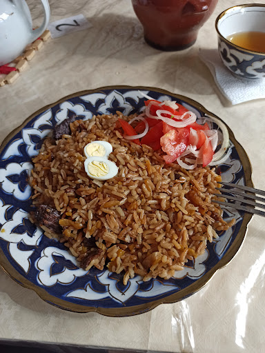 Решила сходить сюда, попробовать что за ресторан. Рестораном я это место не назвала бы - столы, покрытые клеенкой, на столе уксус прямо в бутылках из магазина , в общем это забегаловка обычная, шаурмячная. Из салатов был только оливье, но его я не взяла, взяла суп с бараниной - мастава и плов. Суп вкусный, хотя удивила подача. Официант притащил горшочек с супом и глубокую тарелку. Я говорю - это мне надо перелить? Но ведь горшок горячий , может быть поможете? Официант стал переливать с помощью салфеток, весь стол залил супом... В общем мрак.. плов обычный.. даже мне показалось подогретый на старом масле. Чая правда не пожалели - зелёный с чебрецом , но он был такого цвета, как черный. Но официант очень вежливый, на прощанье поинтересовался наелась ли я 😊 . В общем есть здесь можно, но эта попытка назваться рестораном мне кажется чересчур...