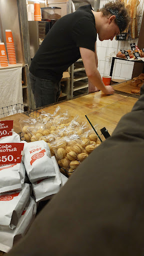 Read moreНиже есть отзыв про запрет закрывать дверь ? Интересно. На улице 15 градусов, в пекарне очередь, я поднимаю коляску, открываю дверь, в пекарне жар, стою на руках малыш, мне вот не холодно. В очереди всем жарко. А вот девушка за прилавком хамски кричит, дверь закройте, холодно. Хм , а что ж уважаемая не шевелится на рабочем месте, ну либо приболела. Очередь не двигалась уже давно. Девушке за прилавком шевелится надо активнее, в пекарне дышать нечем, а ей холодно. Я возмущена до неприличия. Вообще в этой булочной плохо с клиентами общаются уже давно. Вокруг кстати много новых, с вежливыми и...