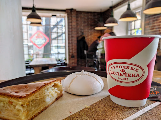 Read moreНебольшое заведение на углу Среднеохтинского проспекта и шоссе Революции. Два входа с разных сторон. Внутри уютно. Около десятка посадочных мест, за обычными столами и с высокими стульями у пристенных столиков. Пара небольших окон. Оставляет очень приятное впечатление. Девочки обслуживают вежливо, быстро, доброжелательно. Думаю, что Север, расположенный в доме напротив, тоже не даёт расслабляться. Ассортимент здесь типичный для сети Вольчека - хлеба, пироги на дрожжевом тесте, сладости, пирожные и другая выпечка хорошего качества по разумной цене. Вкусный кофе. Подходящее место, чтобы заскочить на пять минут...