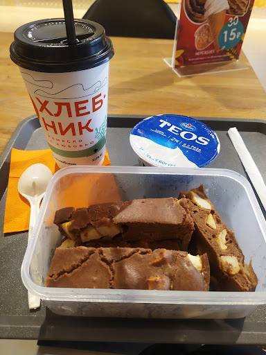 Read moreЗаходила вчера в 20.10 примерно. Брала большой капучино на фундучном. Как и многие люди, я захожу в кофейню больше за настроением, чем за кофе. Первый раз была в этом Хоебнике и крайне разочарована. На мою улыбку и приветствие я не получила от сотрудницы ожидаемой реакции, и я не могу ее в этом винить, возможно у нее был тяжёлый рабочий день, но вот чего я не понимаю, так это следующих ее действий. Она для капучино взбивала молоко прямо в стаканчике, сказать, что я была в шоке, ничего не сказать....на мое недоумение она ответила мне грубым "учитесь". Разумеется напиток был не похож на капучино, скорее на более крепкий латте, потому что она просто влила в молоко двойной эспрессо... опять же никаких положительных эмоций от этого похода я не получила. Девушка была грубовата, я сама работаю в общепите и никто из моих коллег или я никогда себе такого не позволяем. Жаль, что постеснялась потребовать переделать напиток. Не советую данное место к посещению, по крайней мере в смену...