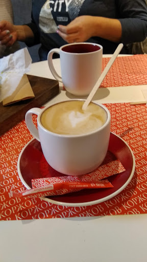 Итак, что касаемо продукции пекарни «КОРЖОВ»: 1 .Вне всяких сомнений изделия качественные , вкусная выпечка, и десерты 🍨 , про сэндвичи 🥪, и блюда кухни напишу позднее - когда попробую, дабы не быть голословным! 2 . Отдельного внимания заслуживает радушие, и дружелюбие персонала- стараются реально предоставить потребителю качественный сервис , и улыбку в подарок , также хорошо осведомлены , и знакомы с ассортиментом . 3 Мобильное приложение «КОРЖОВ». Итак , установив мобильное приложение Вы можете абсолютно бесплатно выпить вкуснейший кофе на Ваш выбор с булочкой «Шу»- тоже на выбор , для этого покажите QR - код сотруднику пекарни ! Это бонус , и это приятно 😊☝️ Так же в приложении много других полезных функций , а ещё - это Ваша накопительная Карта !