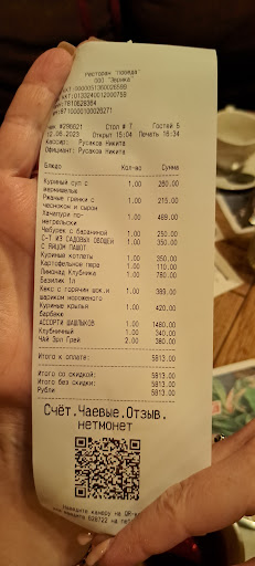Очень вкусная кухня, но огромная беда с посудой. Первый раз мне в стакане с морсом облепихи, был обнаружен, целлофан. К сожалению из-за плотной текстуры морса, я его не обнаружила ранее, только когда выпила морс. Было очень не приятно. Решила возможно он был чистый, но кто-то кинул туда мусор. 🤢 Официант, даже не извинился. Ждала менеджера, девушка извинилась и сказала, обед за счет заведения. Через 1,5 месяца я снова пошла к ним на обед. Подумав, со всеми" бывает".