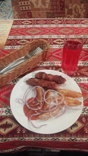 Меню разнообразное, но стейка, который я заказал, как раз не оказалось в наличии. Делаю вывод, что СТОП-ЛИСТ у них постоянно имеется. Пришлось из мясного заказывать шашлык из телятины, качество которого оказалось средним. За это троечка.