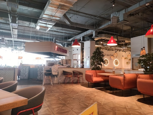 От 03.08.20. Многих блюд не оказалось в меню (паштета из куриной печени, мясной закуски и др), жаль. Бизнес-ланч принесли быстро (жаль, хлеба не оказалось, ничего не предложили взамен), еда вкусная. Учли индивидуальные пожелания по подаче роллов (нарезали для ребёнка 👍🏻). Тунец в роллах не первой свежести (я любитель, чувствую через маринад, желудок «оценил» через час 😉), с лососем всё в порядке. Шашлык из лосося вкусный (лаваш - нет), подача хорошая, с соусом и листьями салата. Считаю, цены слегка завышены. Встречают приятные девушки, обработка рук, сразу меню 👍🏻 Официанты приятные, расторопные. Зал большой, вид из панорамных окон «на район». Детская комната (без няни) - батут (дети рады!!!). Экраны с показами технологии приготовления блюд, мелочь, а приятно! Мороженое вкусное. Девушка за баром - позитив 😄👍🏻👍🏻👍🏻 Думаю, придём ещё! Не отведали сицилийского супа, пасты и, главное, пеперони 🍕