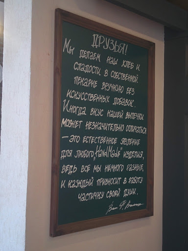 Read moreЛенинград, а затем , слава Богу , Петербург всегда отличался от других городов великолепным общепитом. Сейчас это слово режет слух . Раньше отличался, теперь , думаю , на первом месте. Вот к примеру и эта пекарня . Вернее одна из сетей. Местным жителям просто по хорошему завидую. Туристам настоятельно советую посетить это заведение и ему подобные . Искать долго не придеться. Кроме замечательного хлеба , удивительных пирогов , Вы просто можете выпить хороший кофе. С десертом ....
