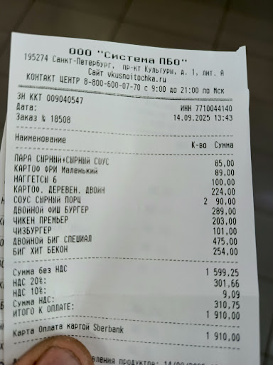 Read moreСок был слишком разбавлен водой, что не очень порадовало. Бургер и картошка были обычные. Порадовало, что не было проблем с терминалом для заказа, чеки печатаются. Ещё приготовили заказ...