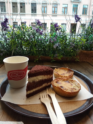 Read moreЛюблю булочные Вольчека, вкусно, а самое главное не дорого, набор пирожных такой же как и везде: сметанник, наполеон, морковник, чизкейки, а ценник гораздо приятнее в районе 40-90 р за кусок, а не так как в большинстве кофеен по 250р за кусочек чизкейка. Десерты все очень вкусные, мне особенно нравится морковник и тарт с черникой! Здесь, кстати, ещё можно заранее за день заказать торт, такой же как эти пирожные, в сметаннике Фокина вроде из 8 кусков, морковник из 12 ти и получится очень вкусный торт и относительно Севера или Буше очень не дорого (сметанник в районе 500р, морковник в районе 900р) , а на вкус и на вид он будет точно уж не хуже! А вот кофе тут не особо, он не то что бы "невкусный", он обычный, ничего особенно, но цена тоже приятная, капучино что-то...