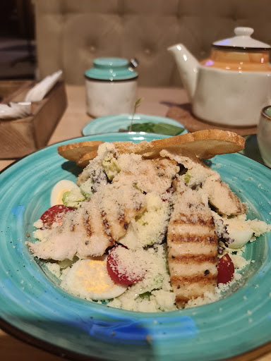 Read moreКогда я зашла в ресторан, тут не было никого. Мин 30 я сидела в зале одна. Заказ :чай, цезарь с курицей и пицца Маргарита. Цезарь принесли пересоленый, с жёсткими гренками. Я попросила переделать-переделали, вроде лучше. Пиццу Маргариту подали с сыром моцарелла, вместо пармезан, как указано у них в меню. Сыр отходил от теста, в пицце было много масла, в общем, была ужасная. Я съела один кусочек и попросила её унести. Чай в этом заведении подают с бизе. Чай нормальный, а безе -просто ужас -жесткое кислое, невозможно жевать (лежало оно не меньше месяца). Не советую это заведение!!! Мне в итоге даже скидку...