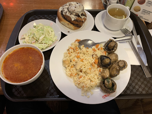 Read moreДобро пожаловать в одно из самых наихудших мест в питере,где вы можете поесть и отравиться... Это место общего питания,конечно,здесь удобно и сначала,я любила это место,но по прошествии времени заходить сюда мне не хочется. А почему? Скажите,вы любите тараканов? Даже маленьких размером с зернышко пшенки? Что вы скажете,если увидите,как из куллера(где заливают соки и компоты) голыми руками достают упавшую туда коробку сока, вдобавок его разводят многократно водой,до непонятной жижи. Что можно сказать,про медленное весьма обслуживание, ибо на раздаче людей очень много, но тех,кто накладывают еду в тарелки, вообще немного - а иногда один из них уходит в зал или куда-то в другую сторону,дабы разобраться с делами. Очередь нервирует. Да,люди там конечно разные питаются,не спорю,контингент разный, но вполне одыкватный - в основном туристы. Минус и в том,что нет безнала,каждый раз приходится снимать в сбербанка деньги, а это дополнительное время. Столы часто заняты,но место есть всегда, поэтому это не проблема. Столы чистые и регулярно убирают со столов. О вкусах еды, есть вкусные и не очень блюда. Некоторые лучше не брать например картофель Айдахо часто бывает горчит, и я не знаю почему. Пару раз находила волосы в тарелке но за все время,всего 2 раза и я думаю, это вполно понятно. Мясо здесь вкусное, и выбор большой, но теперь я не ем мяса и выбор для меня стал меньше. В целом так себе заведение, но если вы не слишком брезгливый, и другие заведения вам дорого могут обойтись,то оно вполне может сойти. Но я...