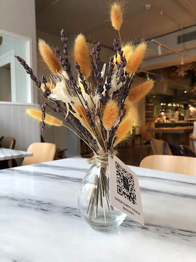 Электронное меню. Меня встретила красивая вазочка с квар кодом. К сожалению "автоматом" функции считывания в моем телефоне нет. Качать приложение, просить друзей дать посмотреть - не нужный дискомфорт.