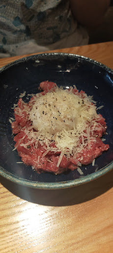 Смущает меня тут два момента только. В уборной, очень ободранный ободок унитаза. Краска видимо с него слезла и...никто ничего с этим еще не сделал. Выглядит так же, как пятно от соуса на свежей белой рубашке - неуместно и не очень эстетично. С моим другом произошла очень неприятная история, когда он забронировал столик на вечер выходного, и был уже на пути в ресторан, когда ему за полчаса до брони позвонили и сказали, что принять его не смогут, потому что кухня работает до 4, поэтому принять его они не смогут. "Извините", сказали. Планы были сорваны пришлось в спешке придумывать место, куда ещё можно попасть в Питере вечером в выходной без брони, обзванивать гостей, пока те ещё не добрались до ресторана, всем объясняя, что план меняется. В итоге приятный вечер в компани друзей превратился в какой-то сумбур. Друг до сих пор невероятно зол 🙈 Когда шла в ресторан, опасалась вот чего-то такого же, равного прошлому коллапсу, но пронесло :) Так что как совет, бронируя сюда, готовьте на всякий...