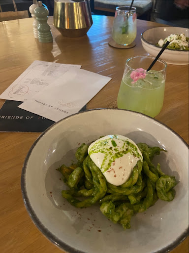 Read moreI think this place might be good for breakfast but not for dinner. We tried 3 different pastas - with prawns, duck, and stracciatella and all of them were only slightly warm and quite mediocre. The basil gimlet cocktail was waaaay too sweet and I didn’t even taste the gin. The server didn’t know all the ingredients of the cocktail. The staff haven’t asked us even once how the food was. Spent around 1500rub per person and would rather go somewhere else for this money. P.S. There were some mistakes in the menu. Исправьте «шампиньены»...