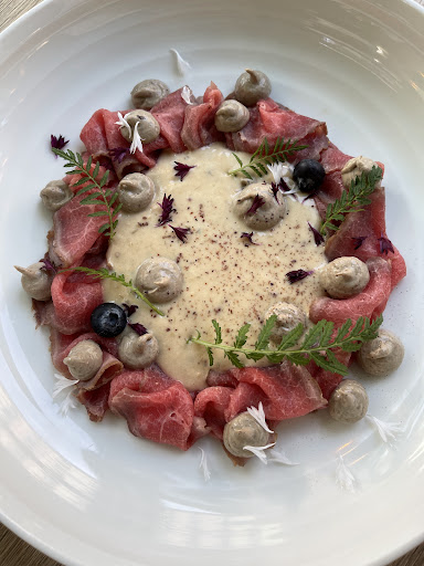 Вечером мы с подругой решили зайти в новое для нас место, и это было приятное для нас открытие. С самого входа нас встретил приветливый вежливый персонал, так как на улице было тепло, решили сесть на веранду, хотя дизайн внутри нам понравился больше. Заказали сначала закуски, потом игристое и мы с подругой увидели в меню наши любимые трюфеля, там есть на выбор несколько блюд, с натуральным тёртым трюфелем, в отличии от некоторых других ресторанов, где для аромата лишь добавляют трюфельное масло и всё. Пасту они готовят сами, домаааашняя. В следующий раз приедем пробовать уже гребешки😉. Потом заказали кальян, кальян вкусный, дымный. Официант у нас был милашка, не помню имя, но очень хороший, у меня аллергия на некоторые продукты, а моя подруга вегетарианка, и он посоветовал нам блюда с учётом наших желаний. Итак нам всё понравилось, вернёмся еще единственное хочется на веранду немного добавить уюта, может скатерти,...
