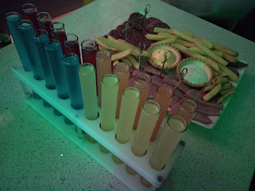Атмосфера: Бар оформлен в стиле лаборатории, с пробирками и химическим оборудованием, развешанными по стенам. Атмосфера интригующая и игривая, создающая идеальное место для необычного вечера.
