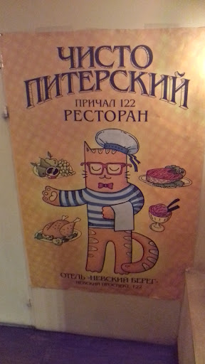 Приезжали с коллегами в командировку на 5 дней втроем. Остановились в гостинице "Невский берег", в стоимость были включены завтрак и ужин в данном "Ресторане" "Причал 122" 1 С утра в ресторане вонь, как будь-то там бомжи ночуют. Завтрак Завтрак "Шведский стол" в целом нормальный, за исключением катастрофической нехватки столиков. Фото, которые приложил владелец заведения, не действительные. Ужин вообще отстой. Во-первых, всё ОЧЕНЬ долго ждать. Подают блюда как попало, сначала могут суп принести, потом салат при чем всем в разное время. Сначала одному, потом второму, мы вдвоем уже поели и только удосужатся подать третьему. Принесли суп, мы попросили хлеб, его несли 15 минут, соответственно уже суп отстыл. Во-вторых, брали пасту 4 раза, всегда разные порции. А выход блюд в меню не указан. В-третьих, блюда не вкусные. Понравились только паста (но опять же всегда были разные порции), выпечка и оливье. Всё! Супы все жидкие, шаурма -одно название, даже курица не на гриле сделана (та же, что и в салате "Цезарь"), стейк лосося заказывала, сам стейк маленький и полит какой-то ужасной сладкой жижой, втроем попробовали, всем эта жижа противна. Все блюда не соленые (кроме пасты). В-четвертых, ресторан разделен на две части, одна из которых типа VIP. Из этой VIP-комнаты переодически доносятся различные вопли, в один вечер мы ужинали рядом с молодыми пьяными парнями В ХАЛАТАХ. Я не знаю, что у них там была за тематическая вечеринка, но нам было не приятно. В пятых, есть бар:вино, виски, мартини, водка и т.д., но нет коктейлей. В Питере масса заведений и я не думаю, что кто-то сюда...