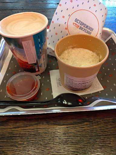 Что плохо? Котлетки с рисом кисловаты. В брауни почему яблочный джем или нечто похожее на него. Заказ не собирается воедино, а выдаётся частями. Девочка на кассе говорит, что "американо готов" И ты ещё пойми, что это именно твой американо, например. Можно бы было просто формировать и подавать заказ на подносе "разом".