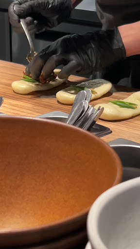 Про кухню: из раздела RAW заказывали нигири лосось, хэндрол лосось, гребешок , краб. Качественные продукты, отличное исполнение. Хочется еще и еще. Из закусок: креветки васаби вкусно и сытно Салат: зеленен водоросли очень свежий, ореховый соус прекрасно его дополняет. Из горячего: спажки с лососем подаются с брокколи, бобами эдамаме и шпинатом. Хороший лосось сложно испортить.