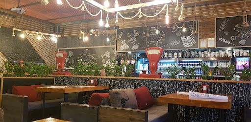Из минусов: -Интерьер. Вроде и приемлемый, но детали, такие как: холодильник с мороженым или что там лежит, не видел к сожалению, продающиеся прямо в зале сковородки в упаковке, проектор, который показывает унылые фотографии будто из начала 2000-х, сделанные на камеру 1.3 мегапикселя... все это убивает внутренний дизайн. Про газеты-меню и говорить не хочется, кто это придумал? Избавьтесь от ненужных вещей в зале, которые не в моде уже лет 10. -Девушка за кассой. Не приветливая, довольно грубо общается, а ведь она лицо заведения, первая кого встречают посетители. Напомнила вечно замученных кассиров в какой-нибудь Пятерочке, но у тех и правда работа скотская, а тут можно хотя бы улыбку натянуть, чуть вежливее разговаривать и быть внимательной к посетителям. -Музыка. Довольно громко играет что-то вроде клубняка, причем не самого лучшего. Найдите человека с хорошим музыкальным вкусом, который составит вам плейлист, подходящий вашему заведению. -Заказ у кассы. Вы сетевуха фастфуда? Посетитель пришел, сел, никуда не хочет больше идти и стоять, держа в уме заказ и РАСПЛАЧИВАЯСЬ ДО ТОГО, КАК ЕМУ ПРИНЕСУТ ЕДУ. Обучите персонал принимать заказ у столика, ничего в этом сложного вроде нет, тем более, что не хочется общаться лишний раз с женщиной у кассы. Итог: Быстро зайти перекусить на голодный желудок вкусного мяса, можно, но долго сидеть с друзьями, тем более с девушкой вечером, я бы не стал, хотя очень жаль,...