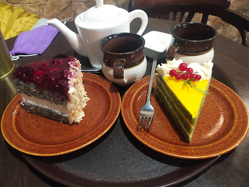 Read moreУютное место, вкусный кофе, на этом плюсы заканчиваются. На вид тортики очень красивые, а на вкус посредственные. Взяли сразу много кусочков, ни один не понравился. Медовик и сметанник совсем не вкусные. Дети даже не стали доедать свои кусочки. Продавщица (по другому её не назвать) не слышет, что ей заказывают, заказали кофе и молоко с сиропом пока не сказали, что она его добавила она и не думала его добавлять. Об простой вежливости и улыбке я уже и не говорю. Ценники с ошибками. Для стаканчиков с кофе можно и специальные картоночки приобрести, которые на стаканы одеваются, так как стаканы тонкие и обжигают руки. Вообщем пришли сюда в первый раз и больше...