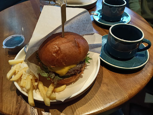 Read moreЖивём через дорогу. Зашли пообедать в выходной. Тут правда вкусные бургеры. К ним подают чёрные перчатки. Вкусный ромашковый чай с апельсином. Ещё вроде много видов пива, но мы не пробовали. Мест немного, один большой и шесть маленьких...
