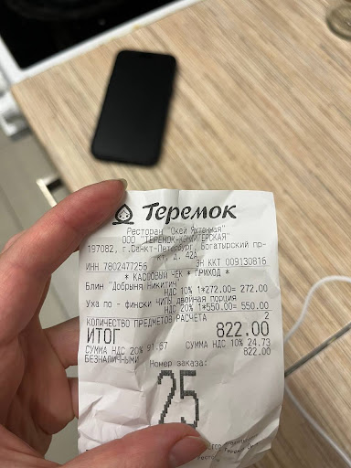 Сегодня 08.04.2025 в 20:43 по адресу СПБ теремок Окей Яхтенная покупал блин с мясом «Добрыня Никитич» для ребенка и суп «Уха по-фински» . Взял с собой домой. Приехал , разрезал блин . ЧТО ЭТО??? удивился листьям салата, странному кетчупу и понял, что меня обманули и положили какой-то другой блин, наверное какой-нибудь «цезарь» с курицей. Разве это недоразумение похоже на блин с мясом???? В итоге ребенок его есть не стал, я тоже такое не ем и блин пришлось выбросить в помойку. Спасибо БОЛЬШОЕ вам, кто сделал мне такую подлость. Теперь помимо негатива от долгого ожидания заказа у меня добавился еще и негатив от подлого кидалова . Мне надо было в заведении НАДКУСИТЬ блин , чтобы проверить то ли мне положили???