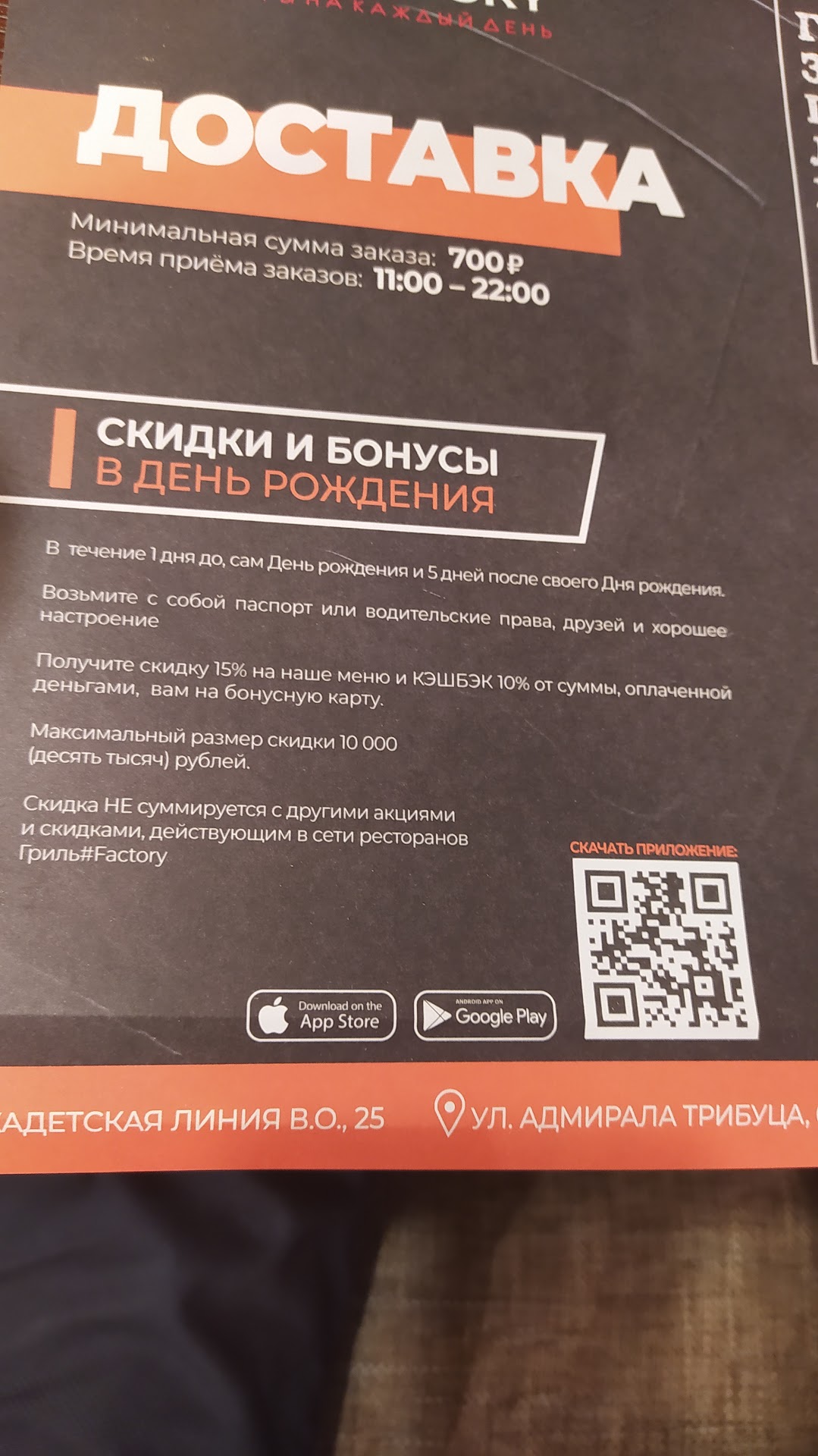Read moreЯ бы и одной звезды не поставил, но тут так не нельзя. Почитал отзывы в интернете об этом заведении, посмотрели меню с девушкой и решили сходить, там покушать в обед воскресенья после прогулки. Заказать столик на двоих там нельзя, поэтому по живой. По дороге к нам прицепились ещё двое и в итоге мы пошли вчетвером. Зашли нас посадили за столик и тут впечатление о грильфэктори начало портиться, во первых посадили в тёмное место в котором просто неприятно, аура может, не знаю, ну и просто некомфортно для глаз. Но выбрали блюда и ждём официанта, 5м, 10м затем решили подозвать официанта и заодно пройти в уборную. Официанта спросили когда к тому столику подойдёт официант, на что в хамоватой форме было сказано "сейчас". И тут моё впечатление об этом месте окончательно ушло в пропасть. После того как с мокрыми руками мы вышли из туалета потому что там нет бумаги и сели за стол, официанта мы так и не дождались как и столика в месте по лучше. Мы решили уйти в другое место не дожидаясь новой порции хамства вместо вкусных блюд которые мы надеялись попробовать, ведь меню и отзывы действительно подкупают. Но не ведитесь. Кстати интерьер там в целом действительно приятный. Попробуем этому месту дать второй шанс в будний день. Надеюсь отзыв я буду вынужден поменять в...