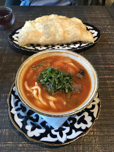 Read moreWas walking on the street looking for a place to have dinner. Decided on coming here because we wanted to try Uzbek and Georgian food, food we can hardly get back home. The atmosphere of the restaurant is really nice, the decor also looks nice. We started the order with order a pot of mulled apple cider which was really good to drink and was full of flavour from the spices. The first two dishes that came out were the Lagman soup and the Chebureki, the soup was full of flavour and probably my favourite dish. For being a soup it had a lot of meat in it. The Chebureki was also good, while not having as much meat as I thought it would the bread was so good tasting. After a bit our order of Ojahuri and 5 Khinkali(dumplings) came. The Ojahuri is a pork dish with potatoes, there was a ton of meat and potatoes. The meat was juicy and had a lot of flavour, the potatoes also were very good. The Khinkali had different flavour but the cheese one was the best. Overall great place and if someone is visiting Saint Petersburg or even lives here should definitely...