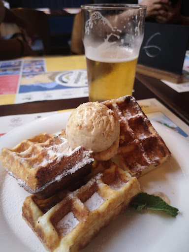 Staff greet us in English, thank God in that. Beer selection is great, food tasted okay and atmosphere is convinience for hanging out with friends. Yes, they have music, but its not loud so you can still have great talks with your mates.