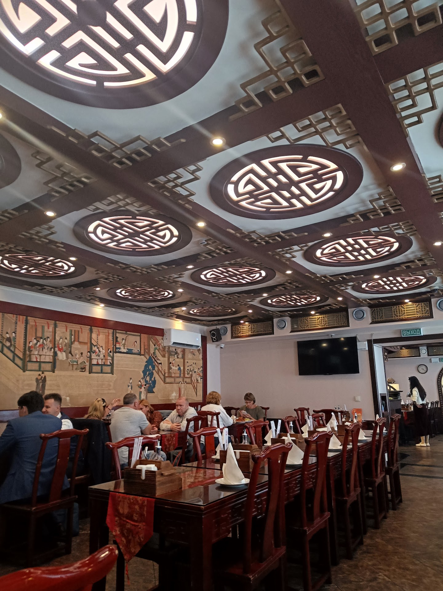 Read moreПротиворечивые чувства. С одной стороны приятная атмосфера, красивая стилизация под восточный интерьер, но... Когда пришли с женой, администратор в почти пустом зале, вернее 3 пустых залах подвела и посадила за конкретный столик. Предполагается, что кушать я должен там, где она решила. Пришлось идти на ресепшн и спрашивать, а можно ли пересесть. На столики у окна бронь, они заняты с 15.00. Мы пришли в 13.15 и справедливо рассудили, что нам этого времени хватит. Вдоволь налиставшись меню, нужно сходить за официантом или через зал покричать, что кушать ты всё-таки хочешь и готов заказать. Как потом выяснилось, всё-таки меню - неинформативное и нужно очень тщательно расспрашивать официанта, что же за состав блюда, которое тебе приглянулось. Ибо, все очень-очень жирное и фактически, или плавает в жире, или запечено в жире, или полито жиром, вернее растительным маслом. Особенно с блюдами с непонятными названиями, ресторан то типа китайский, это, конечно, наш просчет. Хотелось, чтобы официант спрашивал, что и как можно и нужно убрать со стола, мою салфетку всё-таки ему удалось утащить, пока я отвлёкся. Двоякое чувство: с одной стороны вроде все хорошо, но больше туда не придем....