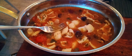 Что насчет еды. Рыбная тарелка (около 16000) прилетела к нам довольное быстро, сибас был вкусным, креветки пробовать не стала, потому что конкретно мне попалась не первой свежести клешня краба, от которой пахло аммиаком, как при разморозке. Подозреваю, краба у них действительно размораживают и подают. Гребешки были суховатые, подруга сначала даже не опознала их в тех бляшках на палочке, которые нам принесли. Мы искренне обе пытались не показать, что что-то идет не так, чтобы не портить друг другу встречу, но уже после выснилось, что у обеих осталось не самое приятное впечатление.
