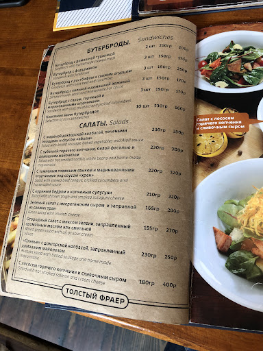 Ну что ж, ребятки, послушайте старика.. "Толстый фраер"знаком мне уже больше десяти лет, и всегда оставляет о себе тëплейшие и приятнейшие воспоминания. Во-первых, это настоящий на 50 процентов питерский, а на 50 процентов ленинградский по духу, бар. Или даже ресторанчик, поскольку тут можно плотно перекусить, а не только закусить пивко. Стоит зайти- на входе тебя поприветствуют, как старого друга, и также приятно обслужат, На стенах фрески и тематические фотографии : Ленинград, "Зенит", 70-е, 80-е и всё такое. За кадром лëгкая, негромкая ненавязчивая музыка из той же эпохи.. А какое вкусное холодное пивко в запотевших советских кружках ! Сразу нахлынет ностальгия и воспоминания о прошедшей советской юности, друзьях и недругах, подругах и тех, кто так ими и не стал.))) И горькие слёзы польются в ледяное "Светлое нефильтрованное" (или любое другое, ибо сортов лëгкого алкоголя тут масса: тут тебе и пива сортов десять, и сидра столько же, и эля сорта три (ну это для дам-с). Кстати, ежели нет пиастров на закуски, во "Фраере" тебе в любом случае совершенно БЕСПЛАТНО дадут тарелочку с рыбкой и соленьями. Так сказать, коммунистический привет!)) В общем, друг или подруга, любишь вкусное живое пиво, атмосферу советского Ленинграда, "Зенит", тебе нужно посетить сие благословенное место. Ну а гостям города...