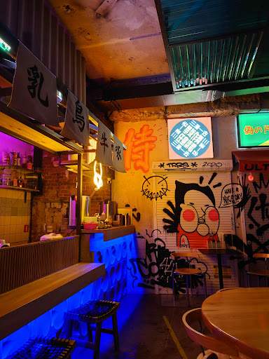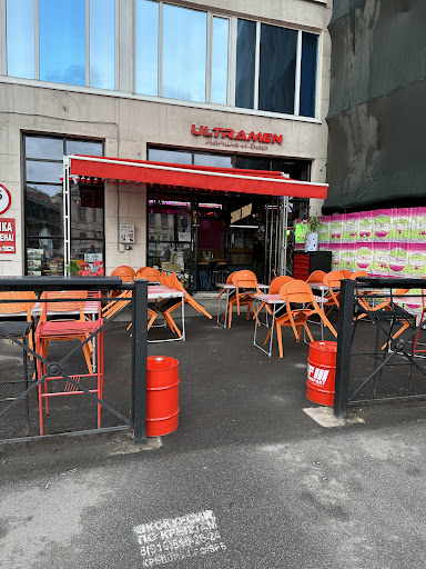 Read moreЧудесное заведение! Ранее на этом месте была шашлычная и всё время проезжая мимо думал , что потенциал локации растрачивается впустую. И вот , Ультрамен от ультра-ребят стал уже заметной точкой на гастрокарте Петербурга. В Субботу вечером почти не было свободных мест, но нам все же удалось попасть. +Обслуживание - friendly, +Музыка - очень прикольный фьюжн из трэпа, корейско-китайских мотивов, +Антураж Чайнатауна 22 века. (Кстати, поклонникам, cyberpunk 2077 должно особо понравиться). +Всё , что пробовали, было вкусным. 1) Том Ям (гигантская порция) с лапшой, креветками и курицей. Удивительно, но подобный антисуп-лапша по вкусу очень похож на традиционный Том Ям, но по духу это Рамен. На него ещё ни раз приеду, однозначно. 2) баклажаны с тофу были хороши, моей спутнице понравились 3) чизкейк ей меньше понравился, а меня порадовала необычность его формы в виде кекса. 4) жаренные эдамаме - отличная закуска с интересным соусом (отдельно стоит отметить, что аналогичные блюда у конкурентов чаще всего не имеют соуса и соответственно изюминки + за цены вдвое выше Ультраменовской) 5) киберковбойский коктейль хорошо, но немного перебор с алкоголем 6) коктейль антидепрессант - идеально, в меру алкоголя и освежающего вкуса