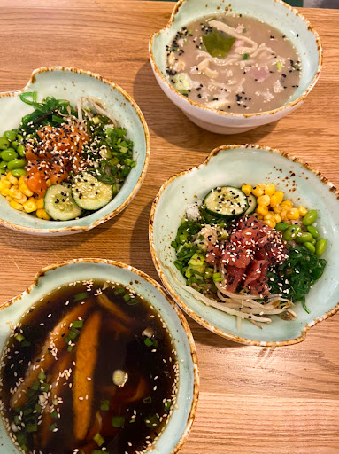 Что же касается еды..Очень вкусно! Сытно, вкусы яркие, все приправленно идеально. За что я могу сказать это том ям с тунцом, поке с лососем и рамен. Эти блюда хороши! Рыба со своим вкусом, свежая, по структуре видно, что не мороженная.