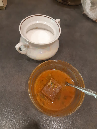 Read moreЯ в шоке!!!До сегодняшнего дня это был мой самый любимый и лучший ресторан в этом городе!!!Но я всегда заходил в ТЦ Миллер. Там грузинская семья, готовят всегда из свежего и очень вкусно, но у них нет доставки. Видимо они против того, чтобы упаковывать еду в дешевые картонные банки и портить тем самым эстетику блюд. Я все-таки решил заказать доставку на дом с Малого проспекта Петроградской стороны 64/13 и был просто в шоке!!!Всё просто ледяное(мне кажется оно было вчерашнее и даже не разогревалось), блюда с огромным недовесом(вместо заявленных 300 и даже больше грамм на сайте принесли всё по 200 грамм, харчо не острый и не соленый, мясо - это просто квадратный кусок кирпича. Курьер блуждал вокруг дома 30 минут, пока пытался понять, что вход не со двора, а с улицы, хотя в комментарии к заказу я все подробно расписал. На фото для наглядности поставил рядом с пиалкой 200 гр сахарницу 300 гр. Пиалка была полная, но она 200 гр!!!Блюдо на сайте заявлено 300 гр!!!И этот квадратный обрубок мяса!!!Просто посмотрите на внешний вид - одна вода и кусок кирпича. Надеюсь, что повар не грузин, он бы так никогда не опозорился. Больше никому не рекомендую заказывать по...