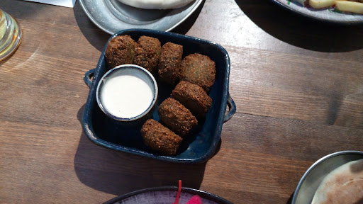 Asked for a plated shawarma, only ate the bread and sauce. Everything else was just bad. Not fully fried fries, tasteless hummus, rancid olive oil and "salad". I can only define the meat as the poorest Jerusalem mix, like they forgot that lamb is in it. When i was kid i ate grout, and was more seasoned than their hummus. With a better texture too. And it's needed to be point, the SERVICE IS HORRIBLE. The waiter discussed with us because he brought a warm hummus with chicken and we asked with pumpkins. P.S. Green day don't combine...