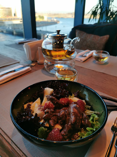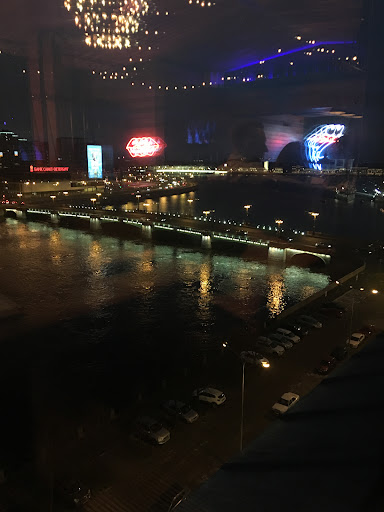 Read moreСам ресторан был бы хорош, если бы не безответственное управление. Начну с хорошего, приятная входная группа, интересный дизайн, немного мрачноватый , но в целом интересный. Очень красивый панорамный вид на Неву, закат с другой стороны,но видны красивые розоватые отблески в окнах домов. Но, концепция премиального ресторана совсем не выдержана. С одной стороны интересный дизайн санузлов, но ‼️ немытая раковина с прилипшими соплями, зато из камня с замысловатым узором.Аналогично грязный туалет. Меню как в гастроресторанах.без картинок и граммов, с интересными названиями, какбы приглашающее пообщаться с официантами, но официанты - либо сами ничего не знают, либо просто не хотят общаться , а настроены только принять заказ. Порции, кстати, маленькие ,не переедите. Мы вообще пришли попеть в караоке, но оказалось, что оно начинается в 23.00, ну это очень поздно. 😭 Стоимость песни 300 рублей. Блюда были нормальные, обычные и принесли их довольно быстро. Вот только суп был еле теплый, и , учитывая время приготовления, я понимаю, что его прохо подогрели в микроволновке ( либо не довели до кипения,добавив холодные ингредиенты) но в целом он был вкусный и свежий. Если бы я ела дома, то его бы дополнительно подогрела. Цены уровня ресторана выше среднего, но единственное за что тут можно переплатить - это панорамный вид, остальное не дотягивает. Есть много других панорамных ресторанов, где концепция выдержана, создан уют и атмосфера. Второй раз я бы не пошла....