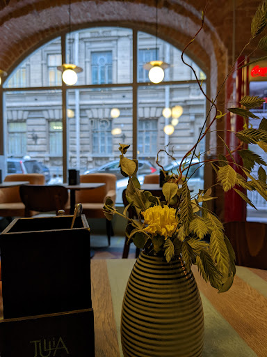 Read moreОчень досадно так говорить, но это место из разряда "если совсем нет альтернативы и очень хочется есть, нет сил терпеть - зайти можно" Если хочется получить впечатление от качественной кухни, приятной атмосферы - это не сюда) Зашли пообедать рядом с домом и несколько разочаровались с самого начала: в заведении неприятный отталкивающий запах, все вокруг будто немного грязное, нет внимания к важным деталям: к примеру цветы на столиках завяли, некоторые детали интерьера уже давно пора обновить, а грязь в углах совсем фу). Внимание к деталям - 50% успеха любого заведения. Надеялись, что все окупится едой(почитали заранее отзывы) и тут разочарование: все, что взяли оказалось однообразной массой с одинаковым запахом. Нет яркости, хотя чувствуется, что само сырьё неплохого качества. В запечёной тыкве - сама тыква была как жижа, а вёшенки будто заветренные и пережаренные. Томатный суп с гречей - это фиаско) Абсолютно неподходящее сочетание, ощущение, что в хороший суп просто бросили вчерашнюю гречу - немного тошнотворно. Морепродукты действительно неплохие, но всё блюдо с ними снова не феноменально, однотонно. В целом, наверное как столовая с дешёвым обедом (кажется по акции он всего 350 р.) - Окей. В остальном цены абсолютно не соответствуют уровню. Как кафе/ресторан, куда приходишь насладиться и получить гастрономическое удовлетворение -...
