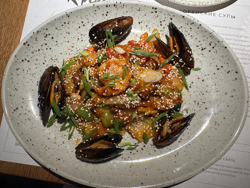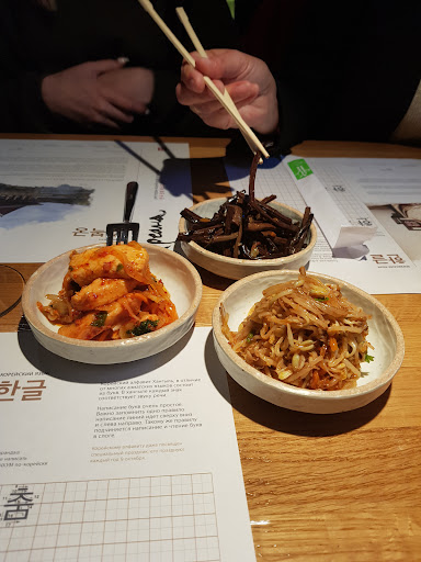 Read moreВ этом заведении были в последний раз. Если в прошлые года посещений всё было нормально и мы замечательно проводили время, то в этот понедельник мы попали в настоящий ад для клиента. Была большая компания девушек (может быть мы из-за чемоданов и шапок с шарфами выглядели как школьницы, но это совсем не давало повода для неподобающего отношения), сказали что нас семь. Не стараясь даже посмотреть по залу, официант кисло нам заявил что есть только место за круглым столом. Отношение всего персонала кроме одной девушки было таким же: тотальный игнор, посмеивания над нашим ожиданием. Официант подошёл к нам спустя три звонка (в полупустом зале), сообщил нам о сервисном сборе и принял заказ. Соуса, которые полагались к блюдам нам так и не принесли, бульоны принесли наполовину, на вторую половину после нашего возмущения ожиданием с невозмутимым видом сказали что бульон закончился и готовится (сразу предупредить и не нагнетать, видимо, не входит в сервисное обслуживание), токпокки ужасные и на вкус и на вид, две почти полные тарелки так и оставили на столе почти нетронутыми. На оплату счета официант подбегал каждую минуту и уточнял когда мы расплатимся (мы неспеша считали свои суммы по чеку, лучше бы он так обслуживал чем выпроваживал). На выходе, опять же, никто кроме той девушки которую я отметила в начале, с клиентами не попрощался - проходили или стояли с кислыми лицами. Фотографировать что-то или оставлять чаевые откровенно не захотелось - спасибо что хоть не помоями накормили. С учётом "восхитительного" приема и испорченного настроения ставлю две звезды - одну за милую девушку, которая позволила не потерять веру в человечество и одну за то, что нам выделили большой стол, хотя могли по-хорошему и в обычном зале посадить как это сделали со следующей пришедшей компанией. Над остальным этому заведению нужно поработать, хотя бы, над улучшением сервиса, сложилось впечатление что люди всё равно придут и будут есть что дадут, так что зачем...