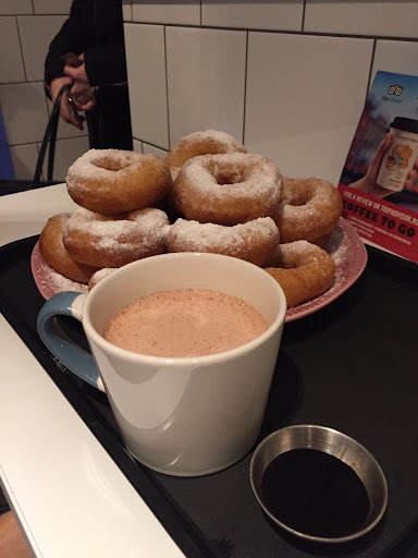 Пышки вкусные и сытные (и жирные, конечно)! Не сказал бы, что они дешёвые, но есть акции, если брать много. Бочковой кофе - машина времени в детство. У нас такое было и в школе и в лагерях. Классика. Ничего другого там не брал, да и надо ли? Сюда ради пышек приходят! Само место прикольное, сделано под советский стиль, но долго там не посидишь: не очень удобные сидячие места, да и устаёшь от белого кафеля быстро. Но скорее всего это так и запланировано, чтоб гости не засиживались долго, ведь пышку съесть - дело 10 минут, а желающих много, так что нечего сидеть места занимать. Нравится политика заведения - часто устраивают конкурсы. Лично я участвовал в двух. Правда считаю, что конкурс с фотографией незаслуженно проиграл, с жюри не согласен, дали второе место. А вот конкурс поедания пышек на время надолго отбил у меня желание даже думать о пышках. Нет, было прикольно, но смотреть со стороны веселее и безопаснее. Как итог: место рекомендую, берите две пышки с сахарной пудрой и бочковой кофе и будет...