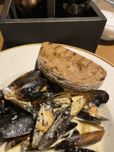 Read moreПросторная входная зона. Интерьер добротный и не кричащий, чувствуется работа хорошего дизайнера. Удобный тяжёлый деревянный стол в нашем случае сочетался с низким диваном далековато отодвинутым от оного, что заставляло прилагать усилия при попытке поесть, несмотря на рост гостей выше среднего. Шум, почти исключающий возможность поговорить, вероятно связан с полной посадкой ( 7 марта). Меню довольно стандартное с попытками назвать на греческий манер всё, что подаётся. Между тем, каждый кто был в греции вне отельной кухни, знает, что греческая кухня поддаётся брендирования немногим лучше, чем румынский кинематограф. Кухня, видимо работала в режиме отчаяния: тартар из тунца подан тёплым и безвкусным, без намёка на попытки добавить достаточно специй, бальзамика и т.п. Зато паста с морепродуктами напоминала безупречную месть: холодная и "альдентентиссимо"( высшая степень " альденте", которая достигается в Италии в очень туристических местах окунанием спагетти в кипяток на 20 наносекунд) Осьминога забыли на гриле на лишних 2 - 3 минуты, что сделало его жёстким и малосъедобным. Выбор вин в меру печальный , но не безнадежный, цены сносные. Темпранильо подан температуры около 25 по Цельсию... Просекко подан без кулера, пришлось напомнить официанту при подаче 2й бутылки, что такой девайс существует. Кстати, про персонал. Попыток улыбнуться не замечено. Это с лихвой компесируется плохим слухом и запоминанием, помноженными на низкую крейсерскую скорость. В общем, в очень хороший интерьер и локацию забыли добавить собственно ресторан. Всё еще можно исправить. Просто добавить вкусной еды и людей, испытывающих радость от своей работы. Кажется , нашего официанта Армана в светлое будущее могут не взять. Но в роли церемонимейстера на похоронах пони он будет...