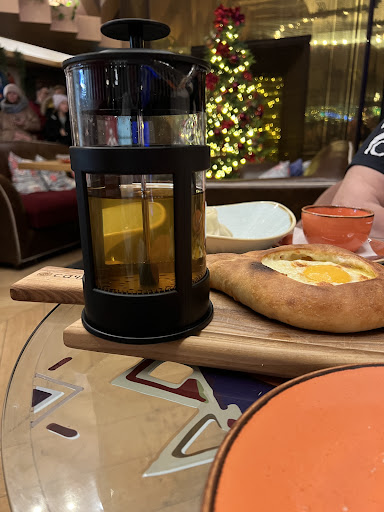 Read moreЗабронировали стол на двоих, хотели вкусно поужинать в грузинском ресторане. Прибыли в ресторан минут за 5 до времени бронирования, провели нас к столику ровно в то время, на которое была бронь. Пришлось подождать. Атмосфера в ресторане , на перый взгляд, приятная - новогодняя (4 января 2024 г). Стол на двоих выглядит как обычный круглый, стеклянный стол, которые используют в отелях для расположения на них больших, декоративных ваз, т.е. очень маленький стол, на котором уже стоит салфетница, солонка, перечница, подставка под зубочистки , сахарница и тарелочка с влажными салфетками, другими словами - занято уже пол стола. Мы заказали чай, хинкали, рулетики из баклажана, бозбаш и хачапури. Ах да, стол был грязный, засохшие пятна и разводы. Мы попросили поменять нам место, с нормальным столом, на который можно разместить все блюда и где можно спокойно ужинать а не заниматься игрой в тетрис на столе, на что нам было сказано что других столов для двоих у них нет. Мы попросили хотя бы протереть стол, так как он грязный. Самый «сок» начался когда стали подавать блюда. Первым принесли баклажаны, поставили тарелку на центр «стола» , при этом индивидуальные тарелки и приборы поданы не были. Мы попросили принести тарелки и приборы, было «съедено» еще часть «стола». После чего мы разложили рулетики по индивидуальным тарелкам , чтобы освободить место для остальных блюд - принесли хачапури и затем чай. Здесь официантка Аня начала играть в тетрис вместе с нами, она поставила чайник на поднос с хачапури (см. Фото) , после чего мы еще раз попросили сделать что-то со столом , так как комфортного ужина не получается. На что официантка Аня сказала «я что могу сделать?!». После чего Аня убрала салфетницу и приборы , чтобы освободить место для блюд, на мой комментарий чем нам вытирать руки и чем нам есть - все было возвращено на место, при этом уронены приборы на меня , прямо на брюки. Извинений тоже не поступило. Данная атмосфера больше не располагала для продолжения ужина, мы попросили отменить бозбаш и принести счет, на что официант Денис ответил : «этого мы сделать не можем, это ваши проблемы , а не наши». Дальше разговор продолжился с единственно-воспитанным человеком , из всех, с кем я посчастливилось пообщаться - администратором Даниилом. Он убрал Бозбаш из счета и предложил нам десерт с собой как жест извинения за отвратительное обслуживание. Вывод : еда на троечку, сервис -ужасный (хамство, неучтивость, нервность персонала). Совершенно не то место, где можно провести время с...