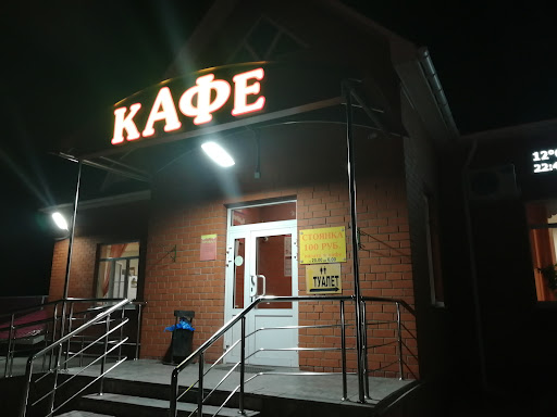 В целом место неплохое. И расположена кафешка хорошо, и место для отдыха есть - правда ночью теперь придётся заплатить, и даже туалет хороший построили - платный правда... Но, качество еды стало страдать. Порции стали меньше, а цена все такая же. Да и содержимое тарелки стало отличаться от названия блюд. Обедали мы с подругой, заказала она салат 'цезарь', так там одно название и цена. А у меня вроде бы и суп харчо, а вроде и нет. Чеснока явно пожалели. Посуда местами колотая, как из такой-то есть, не понимаю. Одним словом, качество блюд падает. Сервис и обслуживание вполне приемлемы. Когда только кафе открылось было на высоте всё, и обслуживание и блюда. А сейчас там...