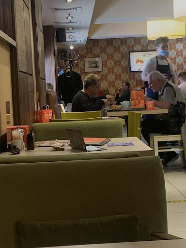 UPD: исправил оценку с тройки на единицу... Вот сейчас сижу здесь и ситуация, когда мы с супругой тут позавтракали, супруга ушла на работу, а я остался здесь поработать до обеда... Блин! Прям ваще меня выбесила эта официантка... Попросил меню! Ок, принесла... Через 15 минут подходит - СЛУШАЮ ВАС! Я прошу - А МОЖНО, ПРЕЖДЕ, ЧЕМ Я СДЕЛАЮ ЗАКАЗ, УБРАТЬ СО СТОЛА? Объясню - с тех пор, как супруга ушла, прошло более 3х часов, посуда с тех пор стоит... Она закатила глаза к потолку, ушла... Приходит через 10 минут, переставляет все с моего стола на соседний (оно там так и стоит), уходит... Приходит ещё через 10 минут, принимает заказ, уходит...