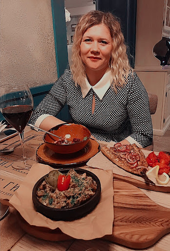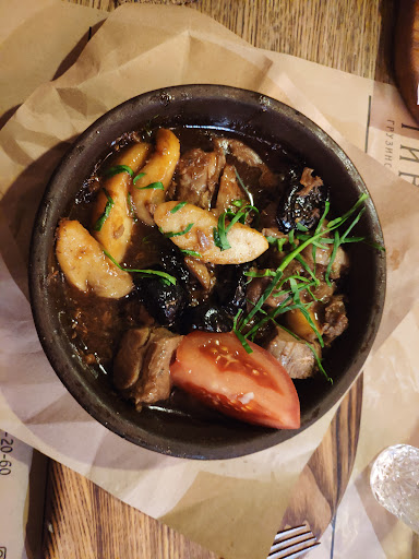 Read moreЗдесь мы были в апреле, в воскресенье. Отмечали день рождения подруги. Посетителей почти не было. Пришли сюда впервые и сразу подкупила обстановка ресторана. Выглядело всё очень уютно: фотографии на стенах, картины, подушки с забавными надписями на диванчиках, немного приглушённый свет и прочие атрибуты )) Первое впечатление было отличным. Затем подошла милейшая официантка и приняла наш заказ, ответив на все вопросы по поводу времени ожидания, процесса приготовления и уточнила некоторые моменты по выбранным блюдам. Порекомендовала вино и национальную кухню Грузии. Ждали недолго. Немного погодя девушка подошла вновь, предложив ответить на 5 ее вопросов о грузинских обычаях. Думаю при большом количестве посетителей такого в ресторане нет, а это был небольшой приятный жест по причине немноголюдности. Нам было приятно такое внимание и ресторан заработал тем самым ещё один плюсик. Спустя ещё какое-то время послышался барабан и звучная песня. К нам подходили все девушки ресторана (персонал) в национальной одежде и пели Happy Birthday to You. Затем устно всего пожелала наша официантка и преподнесла рог с грузинским вином, предварительно попросив именинницу загадать желание. Впечатление от ТАКОГО поздравления было очень и очень приятным и неожиданным для всех нас! Заказанные мною рыба и овощи на углях + салат с козьим сыром мне понравились. Обязательно придем в этот ресторан и, возможно, даже не раз. Кстати, девушка, сказала, что они планировали расширяться и сделать открытую веранду. Всем советую посетить этот ресторан и побыть какое-то время в атмосфере...