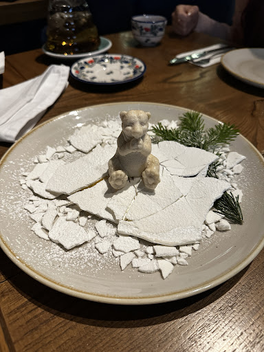 But the culinary adventure doesn't stop there. For dessert, I indulged in a decadent bear fat dessert. It might sound unusual, but the rich, creamy texture and subtle sweetness were surprisingly delicious.