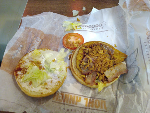 Подходя к касе ощущается предвкушение, что тебя ждут вовсю и уже обсуждают твоё появление, воспевая настоящее умение держаться прямо и прекрасное звучание тембра голоса. И тому подобные прелести, которые обычно свойственны героям индийского кино. Сразу чувство, что ты супер герой. А если ещё и заказ сделать, то ты светлый ангел, спустившийся с небес. Да и сама еда хороша настолько, что можно потерять всякий контроль от перенаслаждения. Бургеры, вопперы, крылышки, биг кинги, беконайзеры, фри и все остальные вкусности.