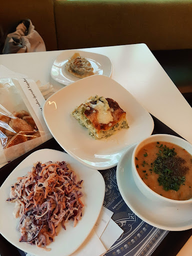 Read moreГуляли по центру и зашли к братьям Караваевым, находится кафе недалеко от Арбата. Широкий выбор гарниров, салатов, мясных блюд, есть десерты, они дороговаты. Также есть хлеб, кофе и чай с собой, печенье и конфеты. После 20.00 скидка 20 % на всё, я взяла салат, котлету и пасту с овощами, вышло на 400 р. Порции нормальные, можно хорошо утолить голод ☺️ Чай подали в маленьком металлическом чайнике, цена зелёного 99 р. хватило на 4 кружки. Столовые приборы имеют забавную вытянутую форму. На входе надпись, что очередь электронная и надо брать номерок... Но есть посетители, у которых наглость второе счастье, такие лезут вперёд 😒 Туалет в заведении чистый, есть бумага и место для мытья рук. Персонал вежливый, не грубят. Если хочется, можно сделать заказ с собой. В общем, заходите на огонёк, если любите...