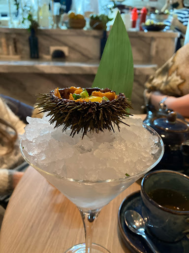 Бронировали за две недели стол на 19:00, предупреждали, что хотим попробовать сет. Из "ресторана" звонили дважды, в том числе в день брони. Ни разу не сказали, что с сетом проблемы и продуктов нет в наличии. Мы об этом узнали только тогда, когда приехали, что крайне обидно, так как выбрали это место именно из-за фестиваля. Сам забронированный стол получили только через полчаса. Моим гостям пришлось ждать на улице и мёрзнуть, так как в помещение даже нет места, чтобы подождать. Хостес очень мило и с маской на подбородке решила врать прямо глядя в глаза, что столик задерживается из-за проблем с оплатой посетителей. Хотя прекрасно было видно, что девушка не платила, а через десять минут ей вообще принесли тарелку устриц. Профессиональное поведение, ничего не скажешь. Администратор просто никакой. Ни объяснить ничего не может, ни ситуацию уладить. Помещение маленькое, расстояние между столиками минимальное. Вешалка одна около входа, перегруженная одеждой. Периодически падала. Безумно шумно, все орут, пытаясь перекричать музыку. Официанты не дотягивают до уровня ресторана. Совсем. Отвратительная манера ставить и убирать тарелки посетителей наклоняясь через весь стол. Одну из грязных тарелок не убирали так долго, что пришлось самостоятельно ее переставить на освободившийся рядом стол. Один из официантов, молодой человек, периодически ходил без маски. Заказывали: