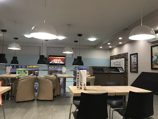 Не в восторге. Обслуживание долгое, цены высокие, по сравнению с конкурентами (MacDonald, Burger King, KFC). Разговорный русский язык у обслуживающего персонала не очень. Это конечно не проблема, но стоит это знать. Не многолюдно, это плюс. Туалет очень маленький, совмещённый, с кодом.